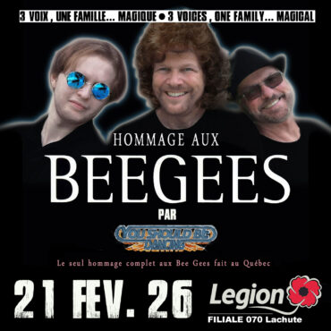 21 Fév 2026 Salle de la Légion à Lachute — Lachute Hommage aux Bee Gees Hommage aux Bee Gees En savoir plus